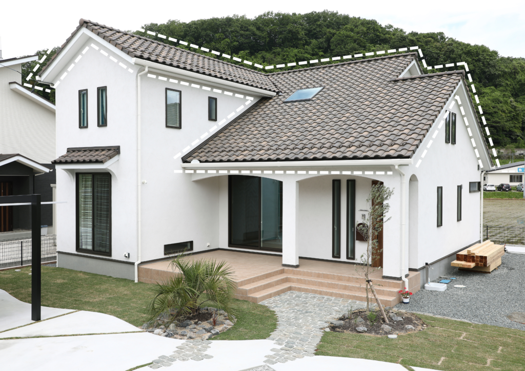 瓦屋根は、耐久性・耐火性に優れ、雨風や強い日差しから住まいを守ります。厚みのある瓦は断熱性が高く、夏は暑さを抑え、冬は冷気を防ぐため、室内温度が安定しやすいのが特長です。さらに遮音性にも優れ、静かな住環境を保ちます。塗り替えや葺き替えが半永久的に必要ないため、メンテナンス費用を抑えられる点も魅力です。年月とともに風格を増し、永く愛される住まいを形づくります。