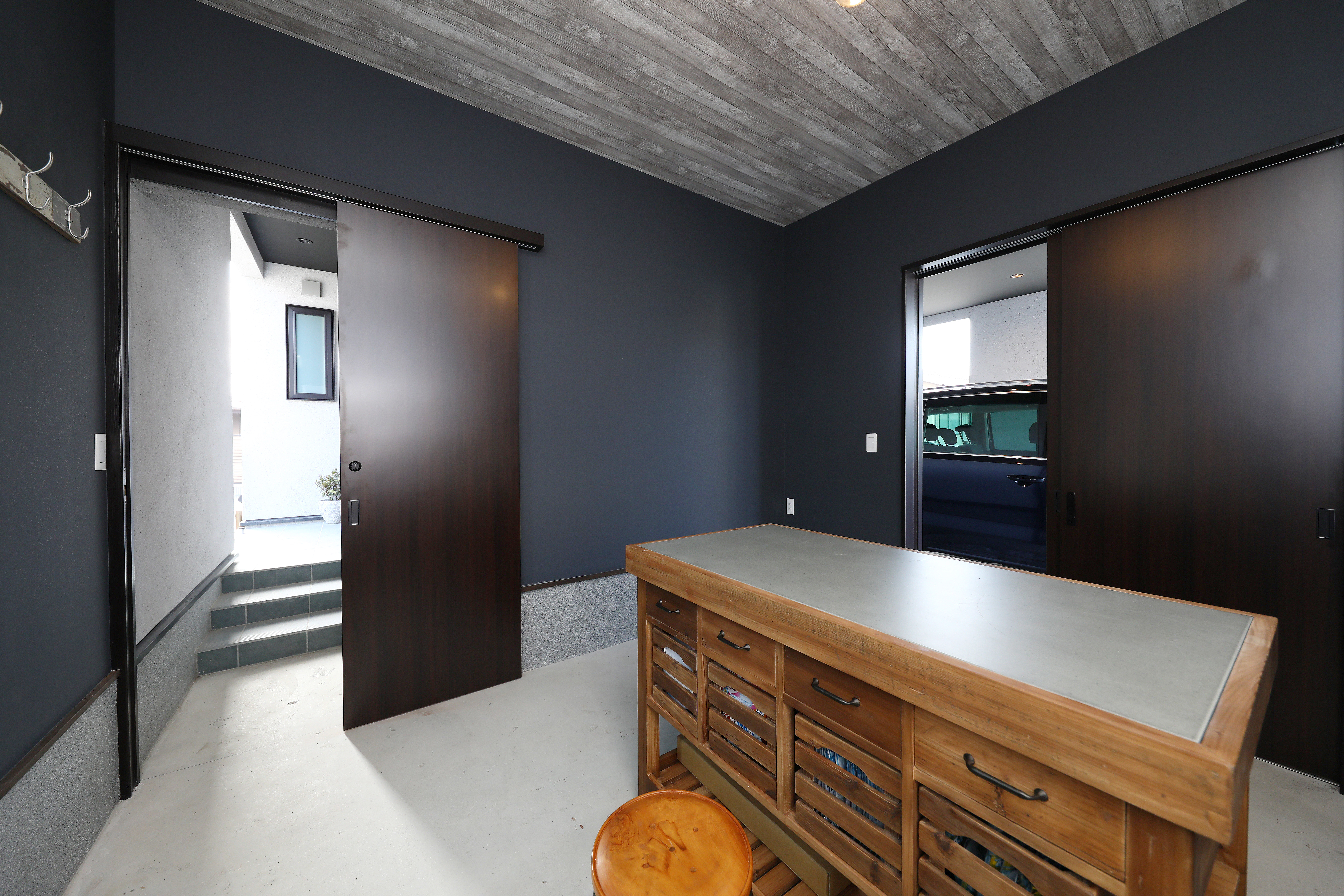 玄関横には、3帖超えのゆとりある外部収納スペースを設けました。