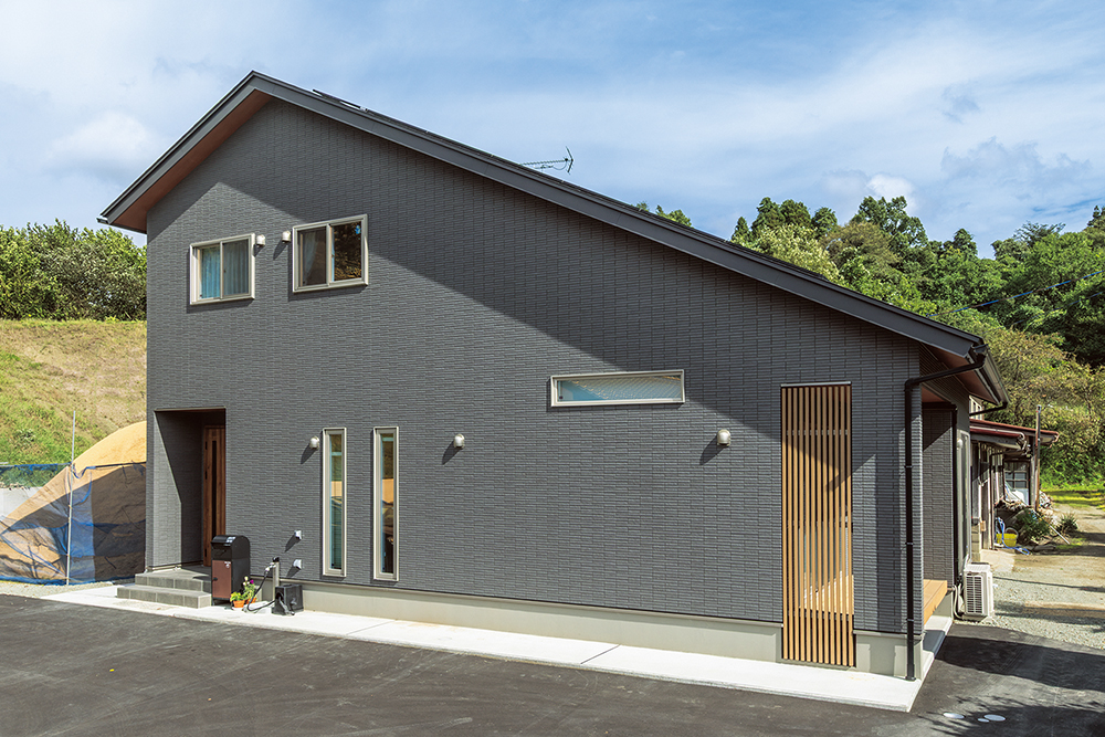 緑豊かな自然環境に美しく溶け込むS邸。お子さんの小学校入学を機に、家づくりを決意したご夫婦は、隣に建つ実家のリフォームを手掛けた『工房夢蔵』に施工を依頼した。耐震住宅工法『テクノストラクチャー工法』が実現する「安心して暮らせる強い家づくり」を信頼していたという。